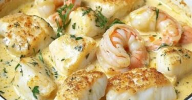 A Flavorful Delight: Shrimp and Cod in Creamy Garlic Sauce