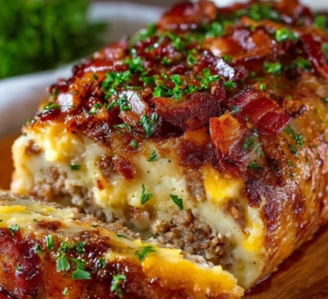 In a lined loaf pan, press half of the mashed potatoes into the bottom.