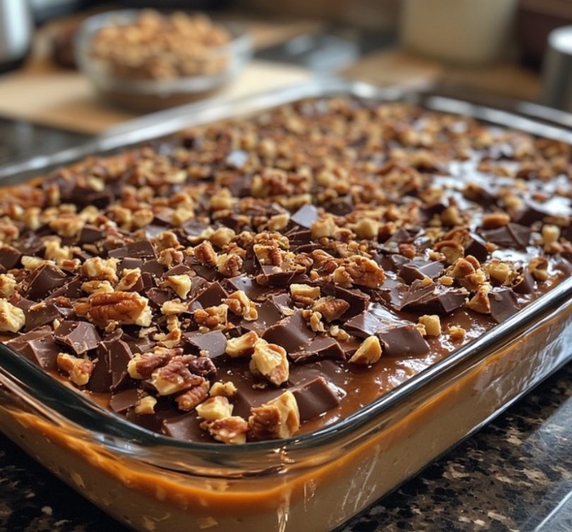 Prepare the Pan: Line a 9×13-inch baking dish with parchment paper, leaving overhang on two opposite sides. This creates handles for lifting the finished slab. Grease the parchment lightly with butter or nonstick spray.