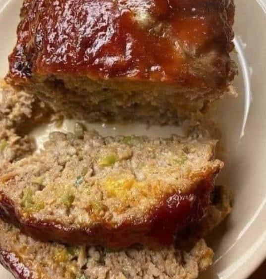 This Cracker Barrel Meatloaf is classic comfort food made with ground beef, onions, bell pepper, cheddar cheese, Ritz crackers and a sweet, savory glaze on top!