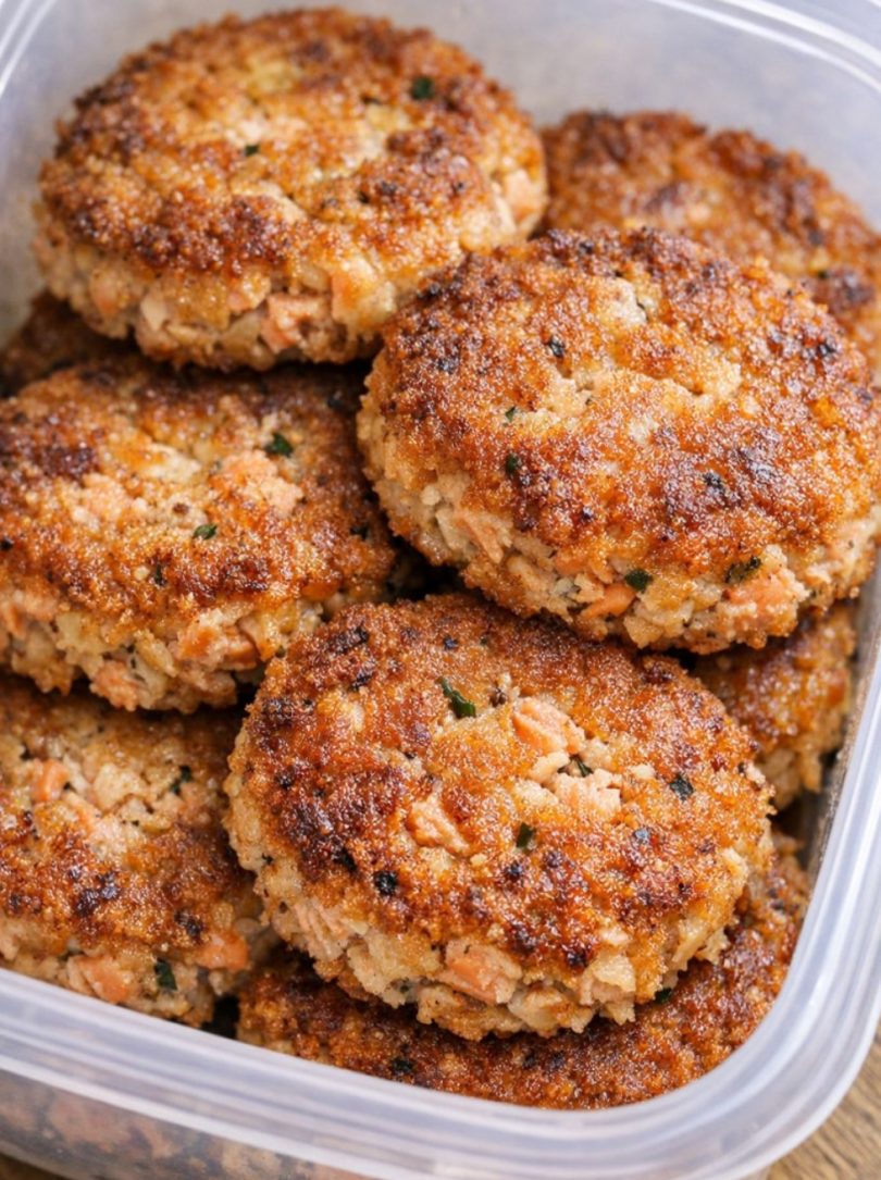 These patties are lovely tucked into a lunchbox container with a few dill pickle spears and some sliced cucumbers or cherry tomatoes. At home, I like to serve them with a simple green salad dressed in vinegar and a spoonful of mayonnaise or tartar sauce on the side for dipping. They’re also good with steamed green beans, roasted broccoli, or a heap of coleslaw for a classic farmhouse-style plate. Eat them hot from the skillet for the best crunch, or enjoy them cold straight from the plastic container the next day.