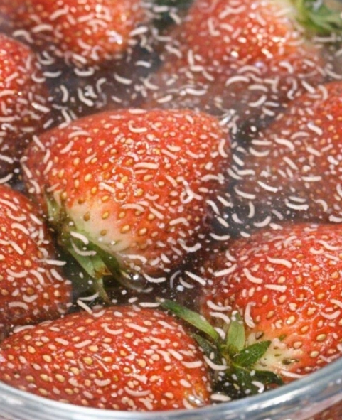The white wiggling things that emerge from berries when soaked in salt water are typically larvae, specifically those of the Spotted Wing Drosophila (SWD), a type of fruit fly. These larvae are small, usually measuring around 1 to 5 millimeters in length. They are difficult to spot with the naked eye when nestled inside the fruit, which is why they often go unnoticed until the salt water soak.