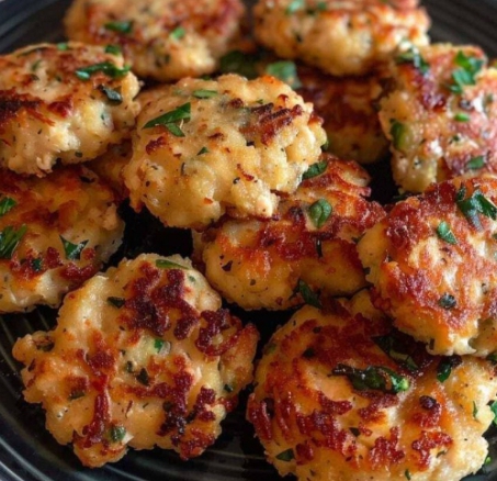 These fritters are a perfect way to use leftover chicken or canned chicken. Shredded chicken is combined with a flavorful mix of spices and breadcrumbs, then fried until golden brown and crispy.