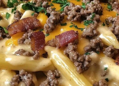 Garnish with fresh parsley, and serve hot. Enjoy the ultimate comfort food loaded with bacon and cheeseburger flavors!