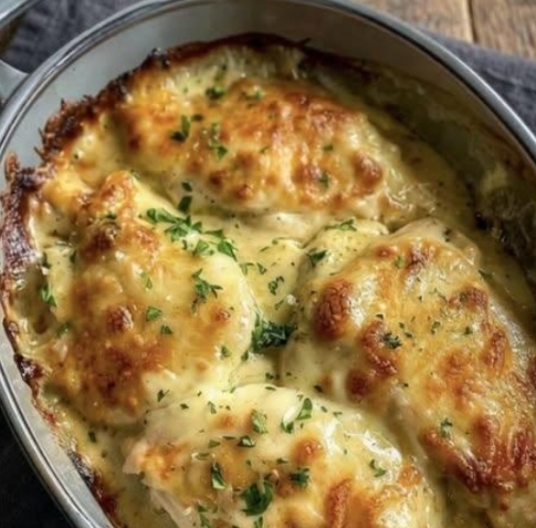 Melt-in-Your-Mouth Chicken is a legendary home-cooking staple famous for its incredibly tender, almost butter-like texture. The secret to this dish lies in its creamy coating—a mixture of mayonnaise (or Greek yogurt) and Parmesan cheese—which acts as a protective seal during the baking process. This coating locks in the natural juices of the chicken while creating a savory, golden-brown crust on the outside. Often topped with seasoned breadcrumbs or stuffing, it offers a delightful contrast between a crunchy exterior and a succulent interior. It is a foolproof recipe that transforms standard chicken breasts into a gourmet experience with minimal effort.