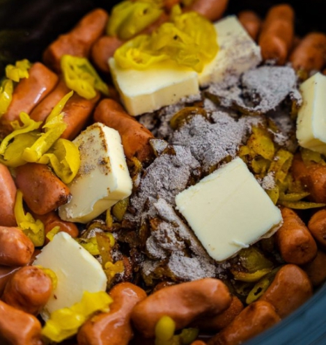 1. Add all the Lit’l Smokies to a large slow cooker and pour the pepperoncinis with juices over the top.
