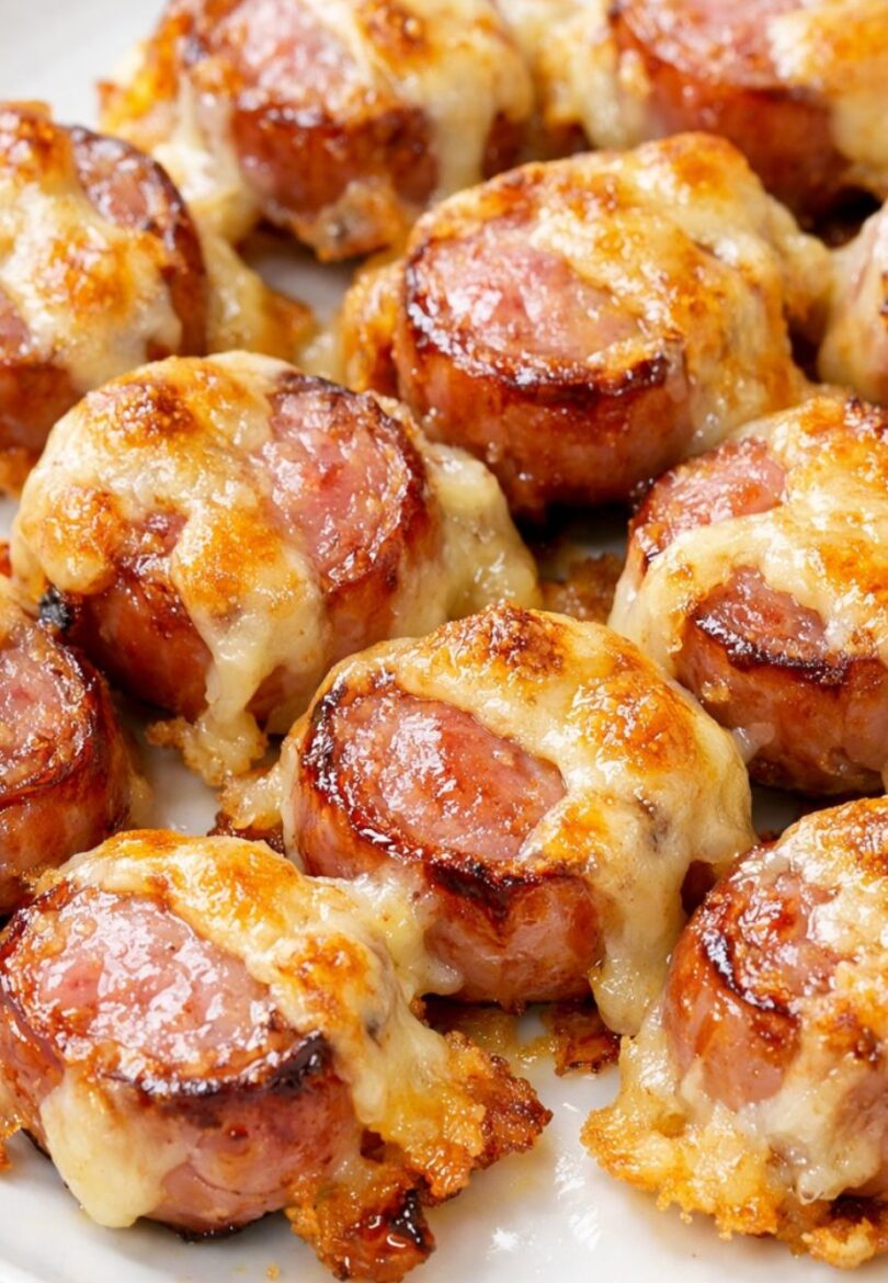 Transfer the sausage bites to a white serving plate while they’re still warm, making sure to include some of the crispy, cheesy bits around the edges for that salty, savory perfection. Serve immediately with toothpicks and optional dipping sauces.
