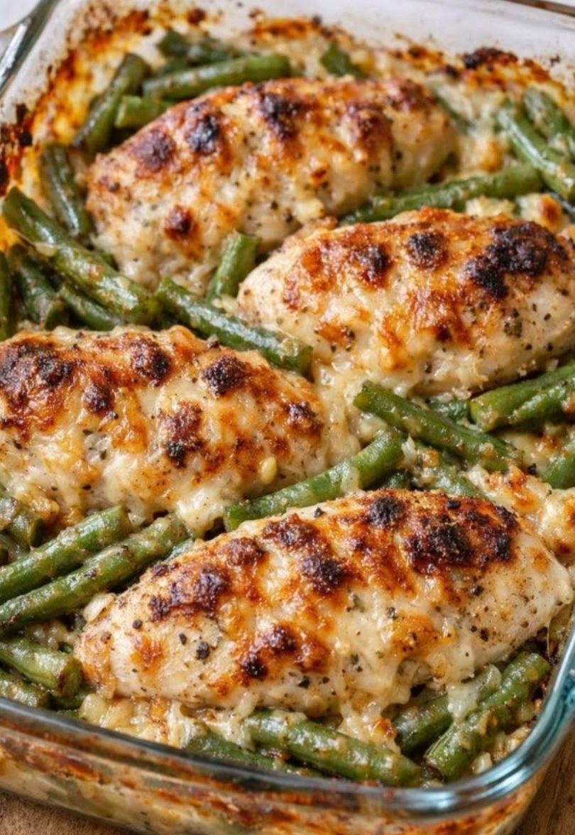 💡 Pro Tips:Pat frozen green beans dry—excess moisture makes casserole soggy.Use boneless thighs for extra juiciness (breasts work too!).Don’t stir after layering—this keeps the topping crisp.