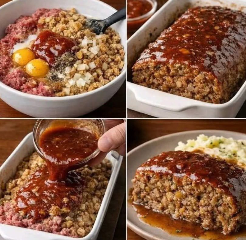 Bake for 50–60 minutes, or until the meatloaf is cooked through and reaches an internal temperature of 160°F (71°C). - Rest and Serve: