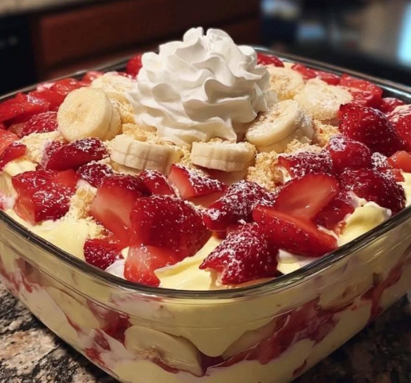 - Optional: garnish with extra sliced strawberries or crushed vanilla wafers.