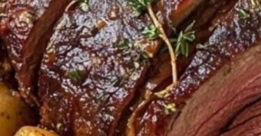 Add Broth and Herbs: Pour in the beef broth, ensuring the liquid covers about half of the meat. Add thyme, rosemary, and bay leaves.