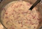 Gradually add the milk to the skillet, whisking constantly to prevent lumps. Continue to cook and stir for 3-4 minutes, or until the gravy thickens.