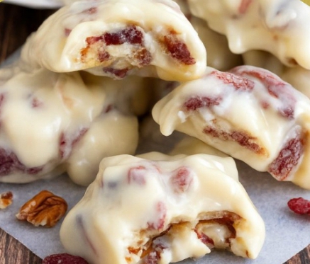 6. Once set, the White Chocolate Cranberry Pecan Clusters are ready to be enjoyed!